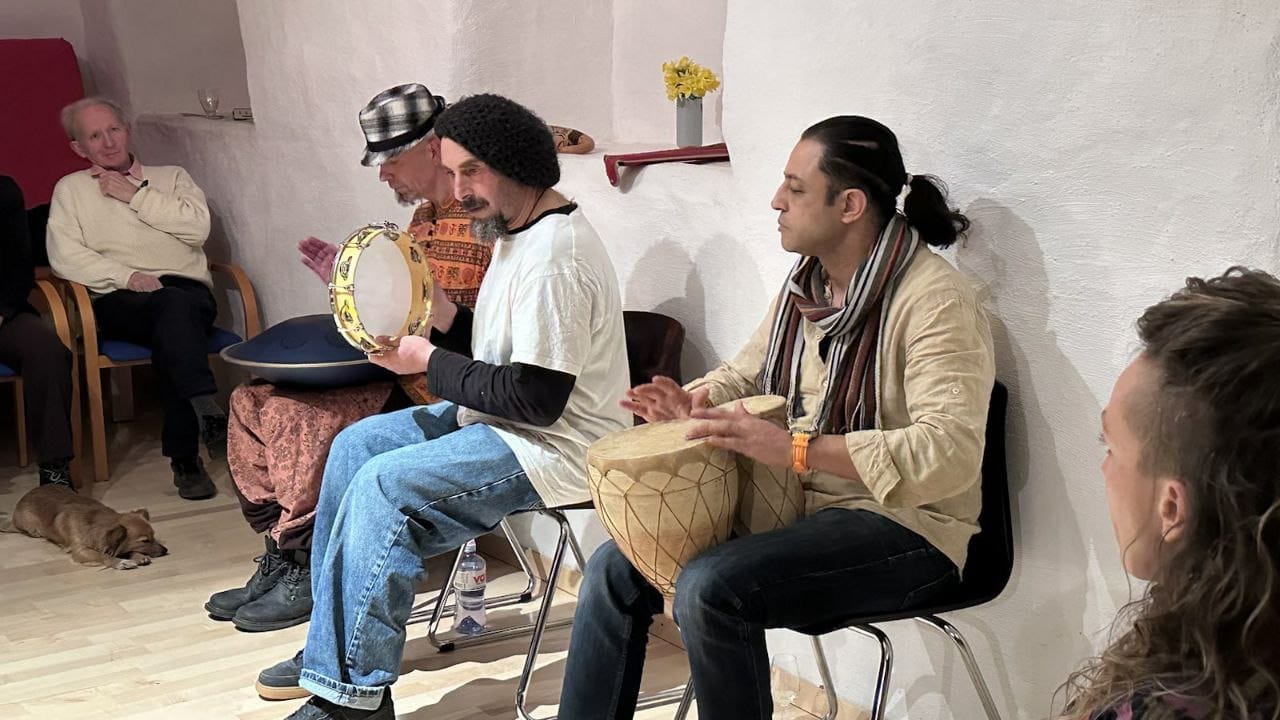 un troisième musicien aux percussions